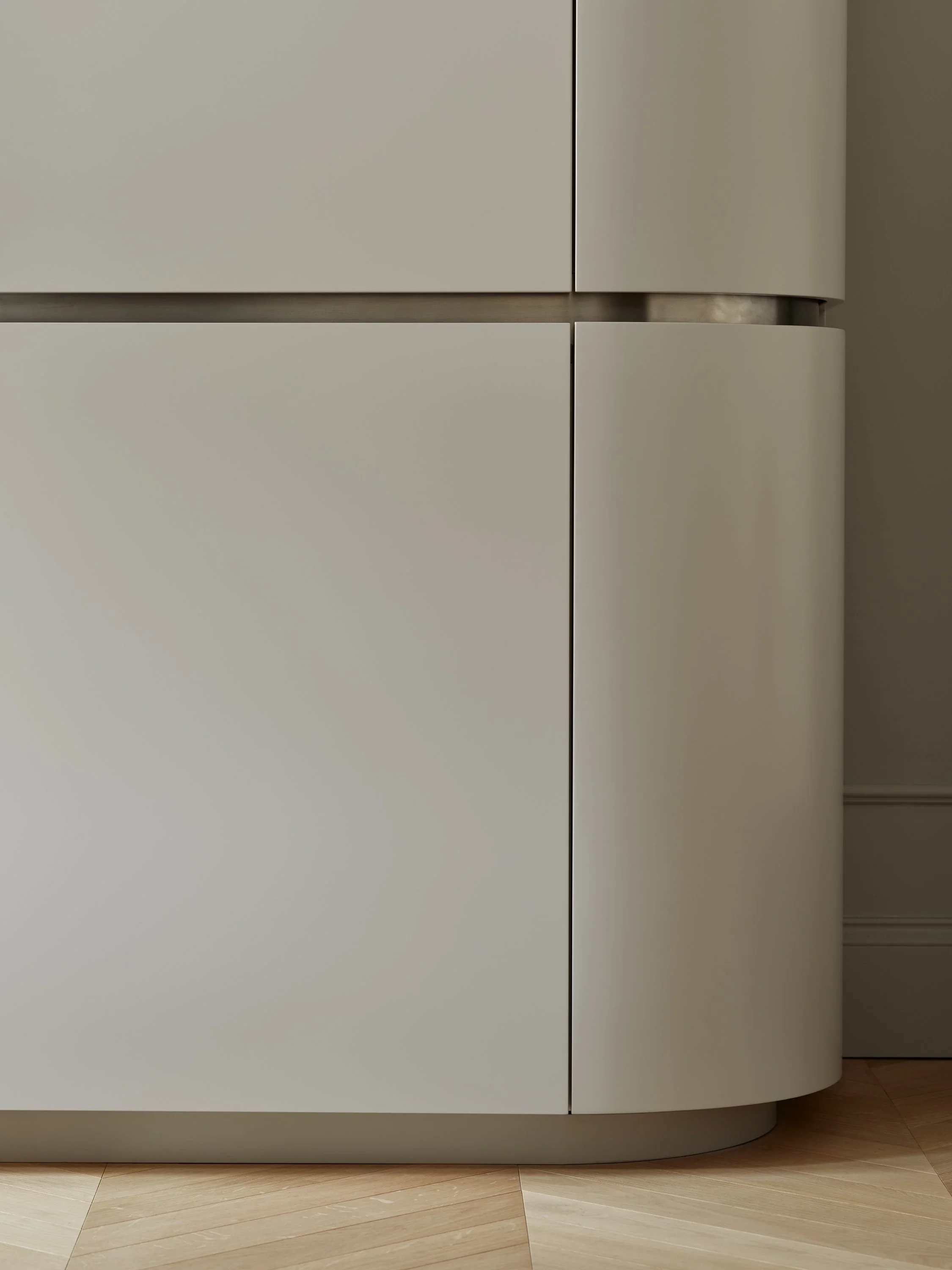 Rundade hörn mjukar upp den minimalistiska designen. Detaljer i rostfritt stål skapar samtidigt en spännande kontrast.