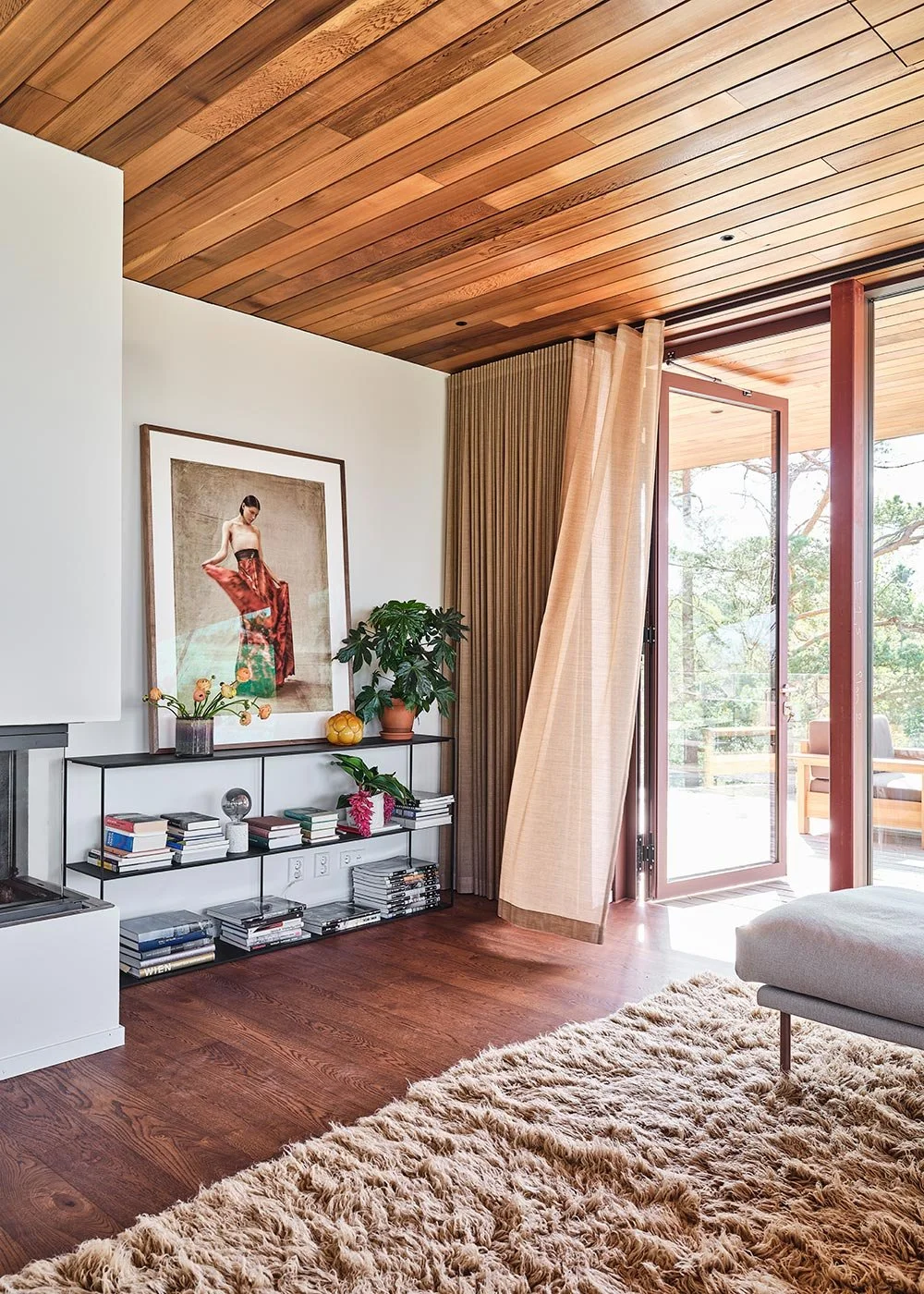 På soffbordet syns Klongs vas Äng, design Eva Schildt. Lampa, Artilleriet. Soffa, Mod, Molunden, design Henrik Schulz.