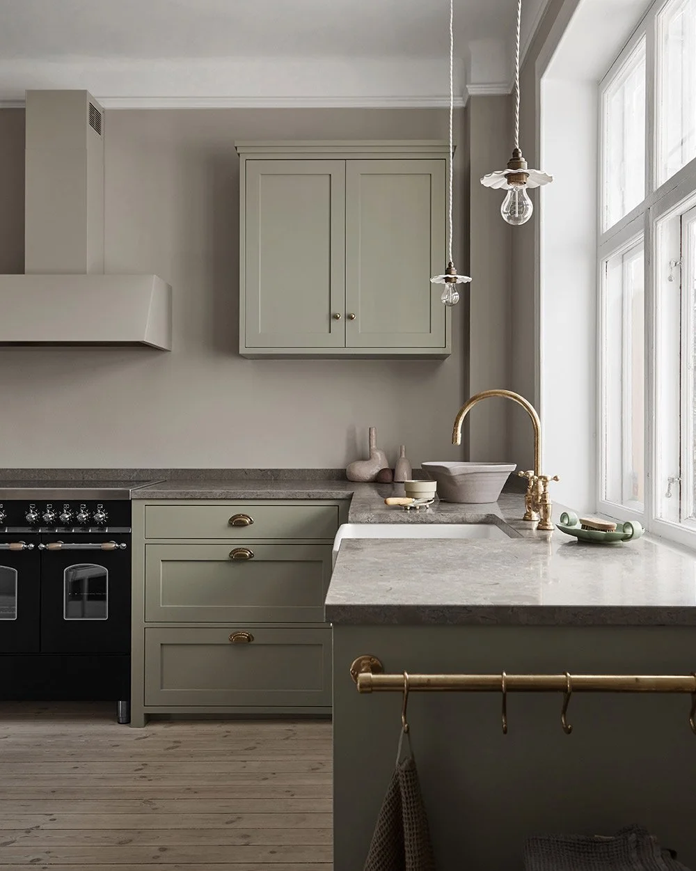 Har du en vacker gammal byggnad med renoveringsbehov? Få saker blir lika fint och tidlöst som ett shakerkök i mjukt grönt. Men även ett modernare kök med släta luckor blir fint i grönt, oavsett vilken ton av färgen du väljer. Generellt kan man se ett sug efter olivgröna och khakitoner i inredningsbranschen just nu.