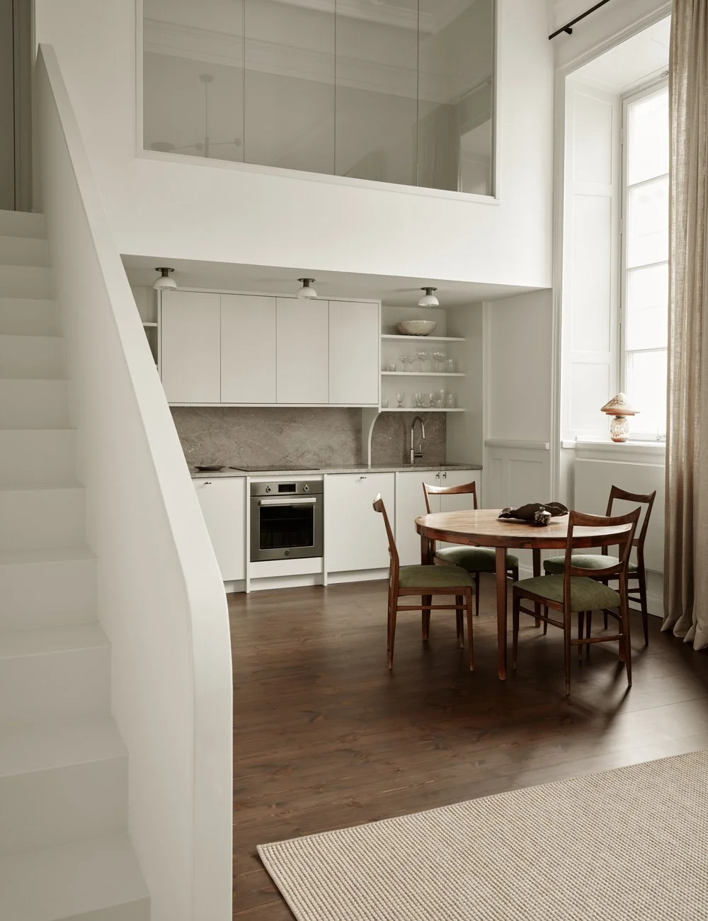 I en nyrenoverad lägenhet i en gammal skolbyggnad från 1880 på Södermalm i Stockholm, har inredaren Christina Nydahl, som driver inredningsbyrån WTP Studios, satt sin tydliga prägel med ljus färgpalett och med köket som lägenhetens blickfång.