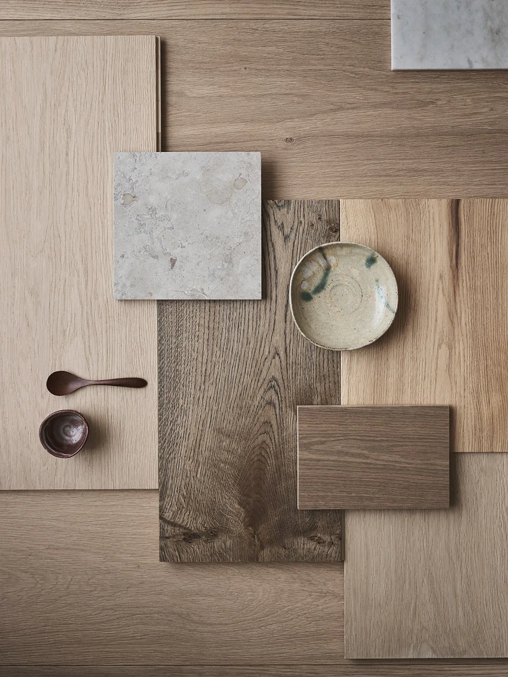 Japandi präglas av naturmaterial, som trä, sten och keramik.