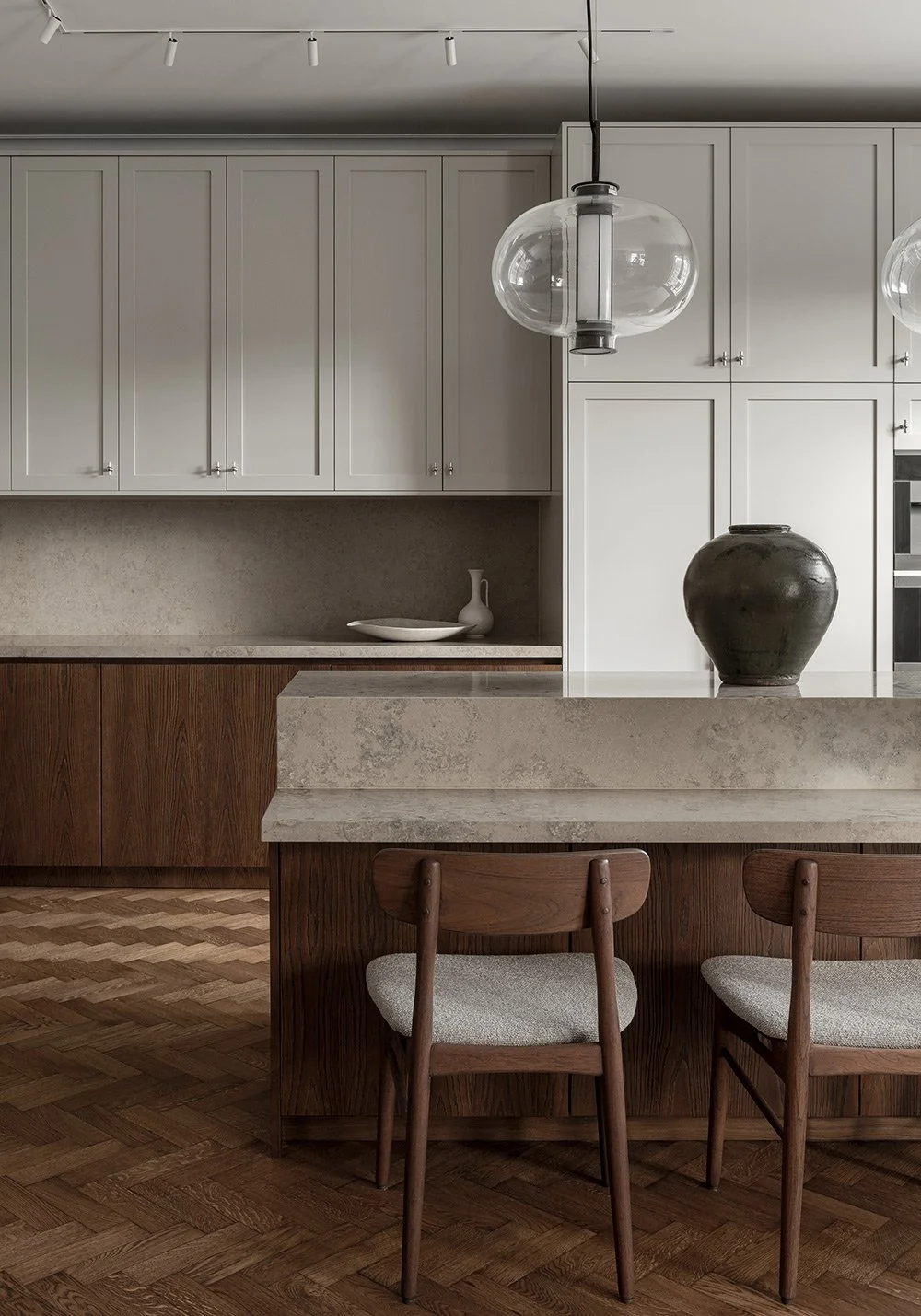 Den neutrala färgpaletten, kombinerad med moderna detaljer, förstärker den tidlösa känslan.