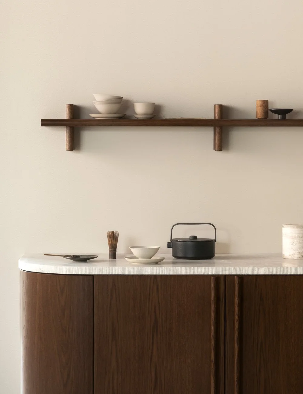 Platsbyggda detaljer och mjuka, organiska former ger en modern känsla i japandi-köket.