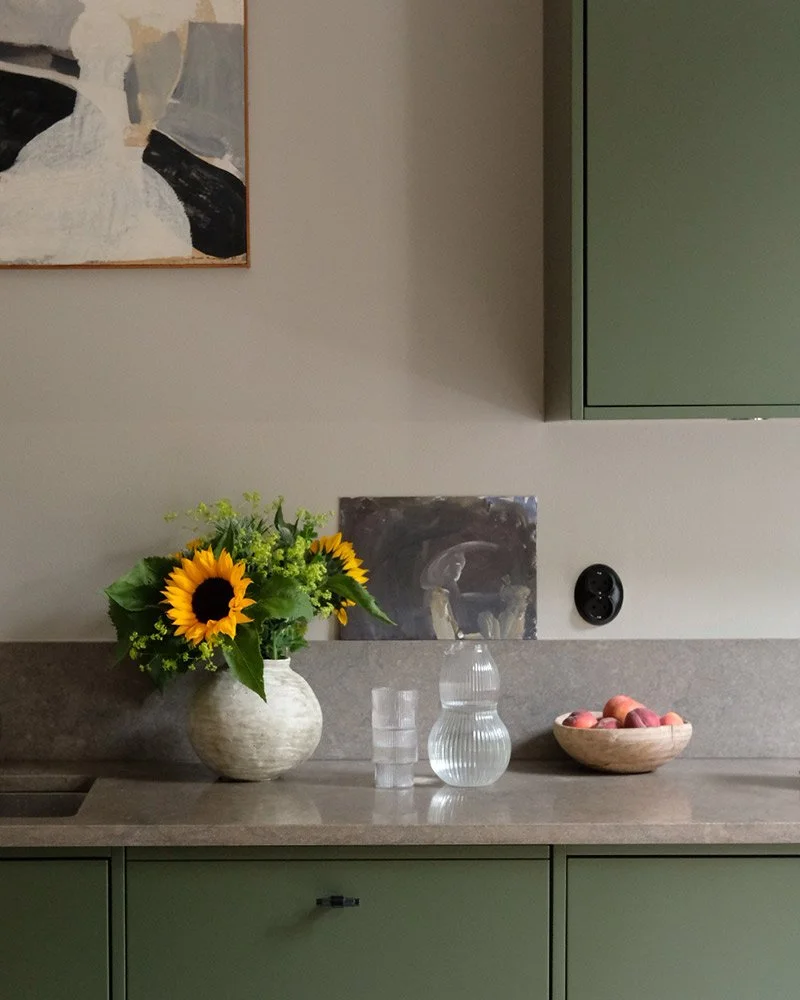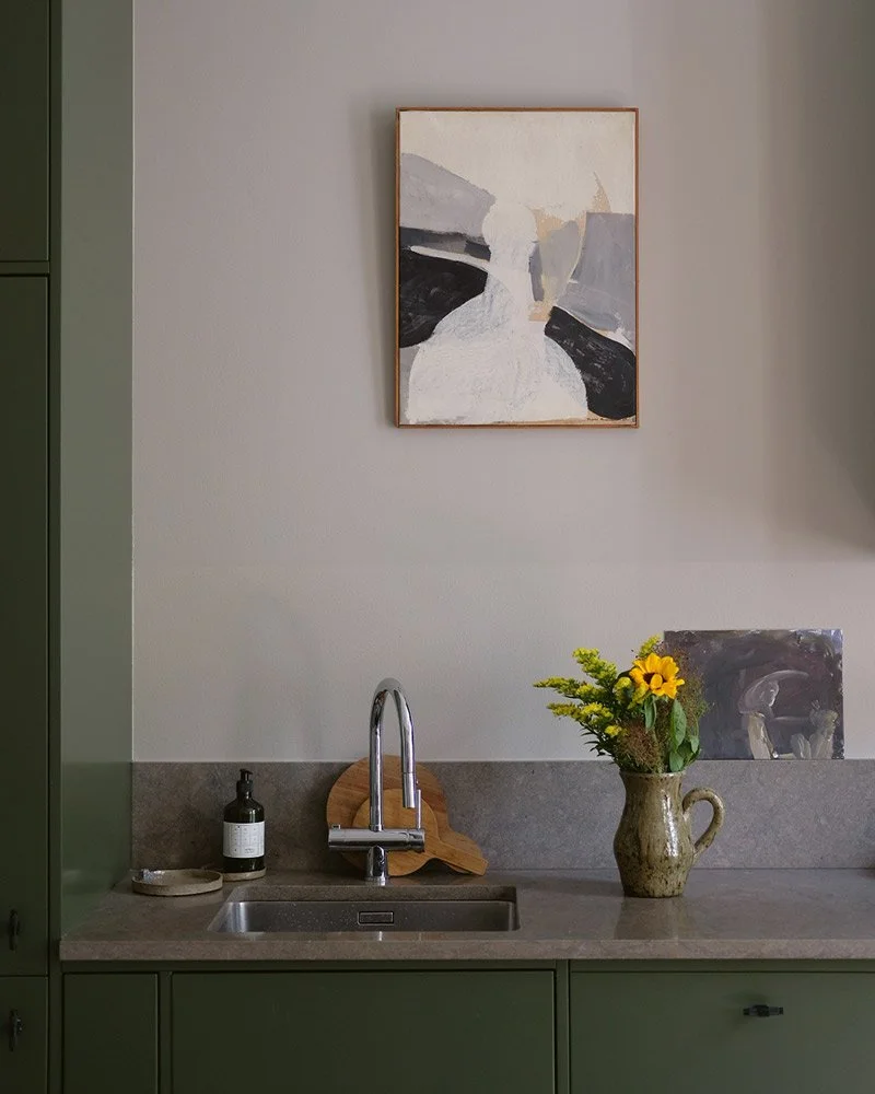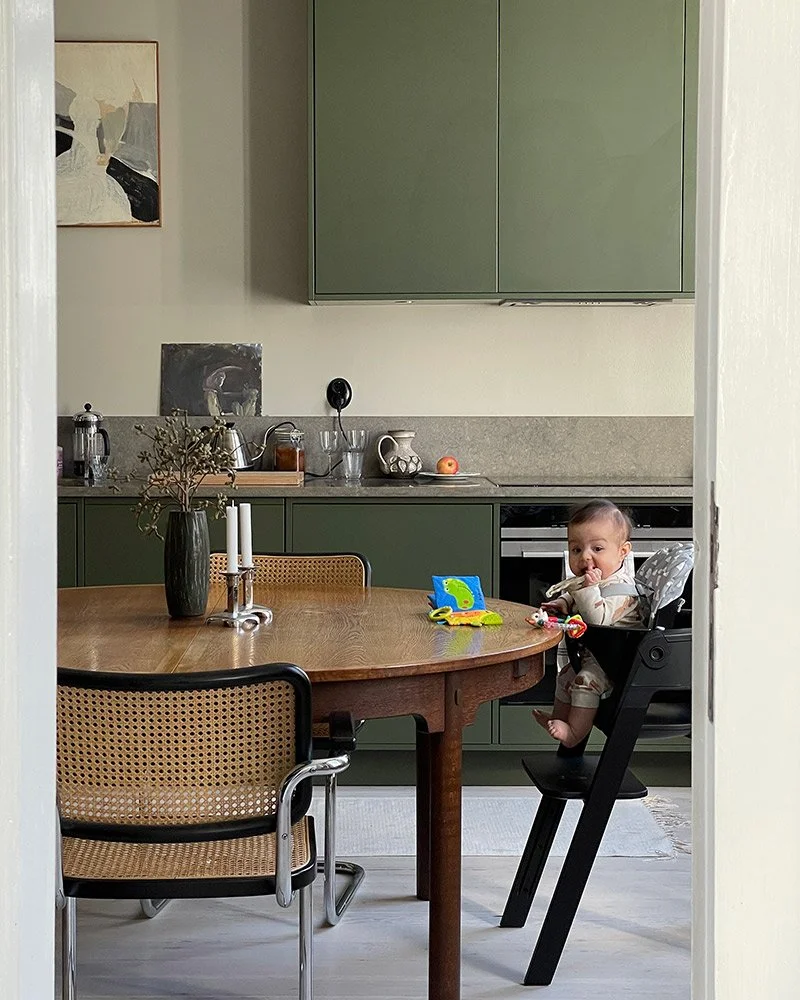 I slutändan blev det nog en mix, vilket passar oss väl. Kökets roll har förändrats i takt med att vår äldsta dotter blivit större, och att vi nu har en till bebis. Det som från början var ett rum som skulle se fint ut, har mer blivit ett kök att leva i. Och visst får man kalla högar av osorterad tvätt, utspilld välling och vissnade blommor för kontinentalt stök?