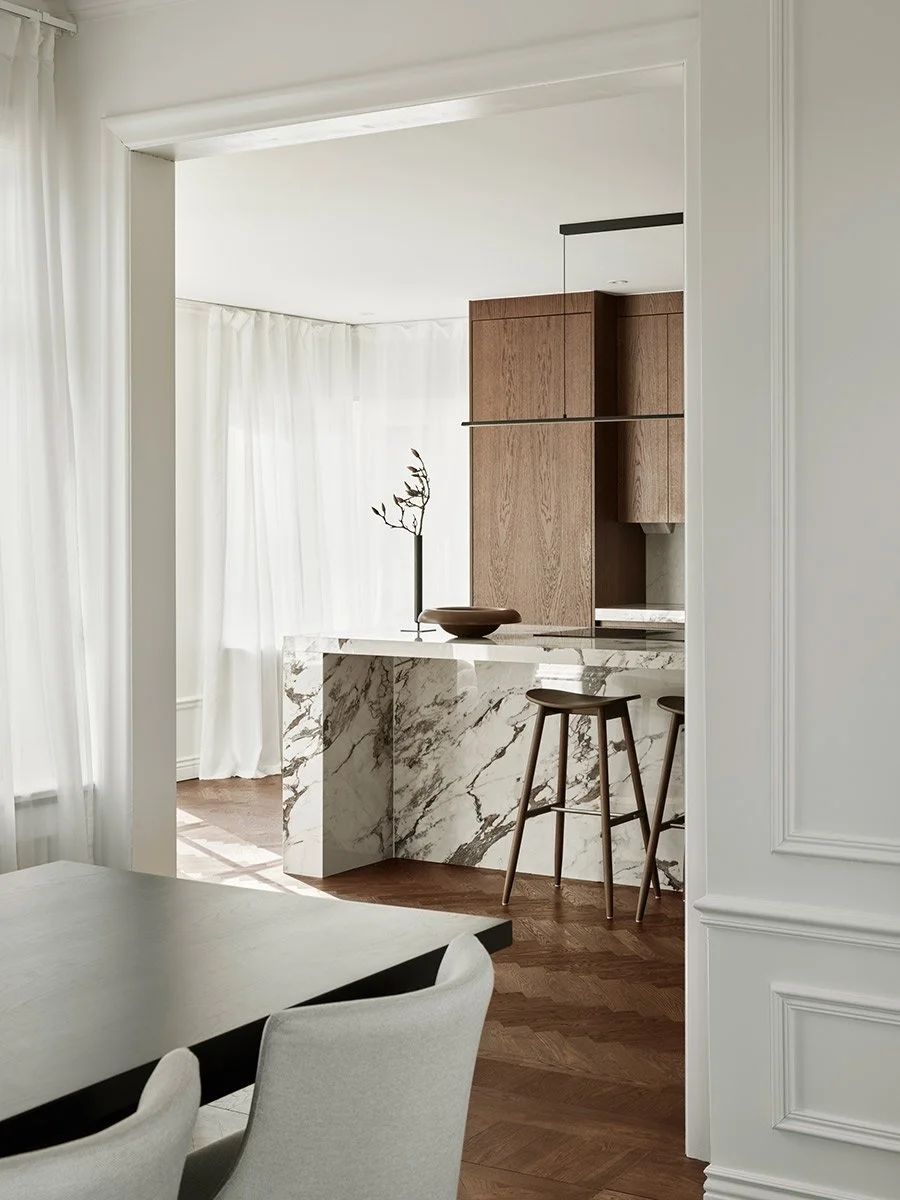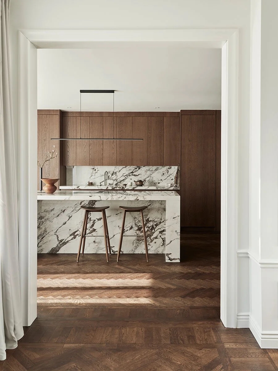 Även golvet går ton i ton med köket och skapar en sofistikerad känsla.
