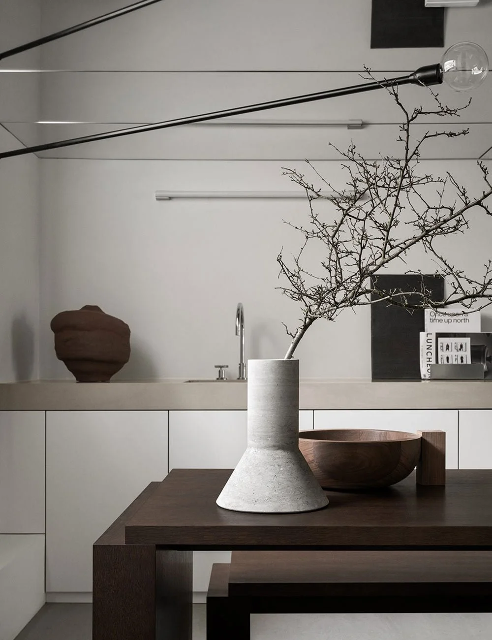 Dramatisk sten skapar personligt uttryck och lyfter det nedtonade minimalistiska köket.