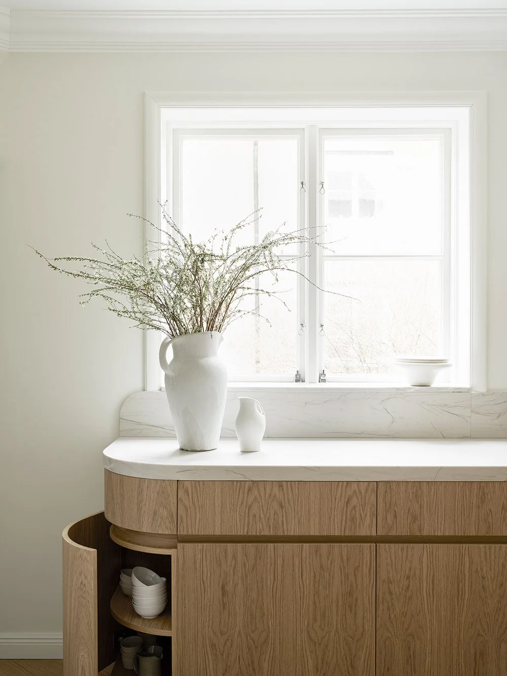 Likt ett vackert smycke får köket tydligt sätta tonen. Det kan handla om moderna funktioner som byggs in, som exempelvis dold, rundad förvaring, likväl som sofistikerad materialkontrast.