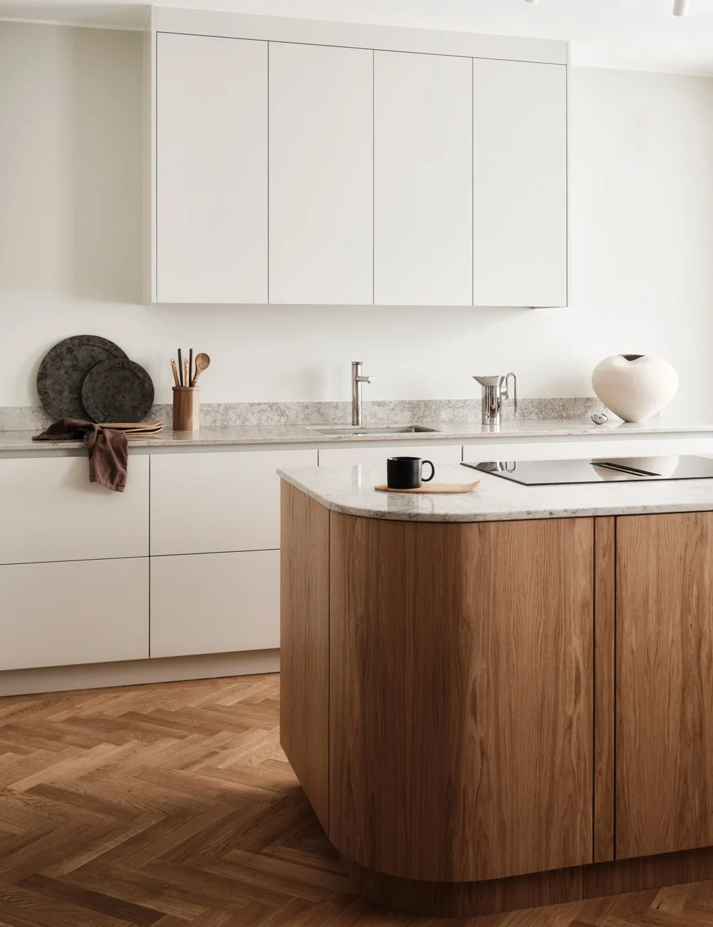 Blanda köksstilar för ett personligt och unikt kök – här möts rundade detaljer och raka linjer i en varm och inbjudande design. Se mer av det vita skandinaviska köket.