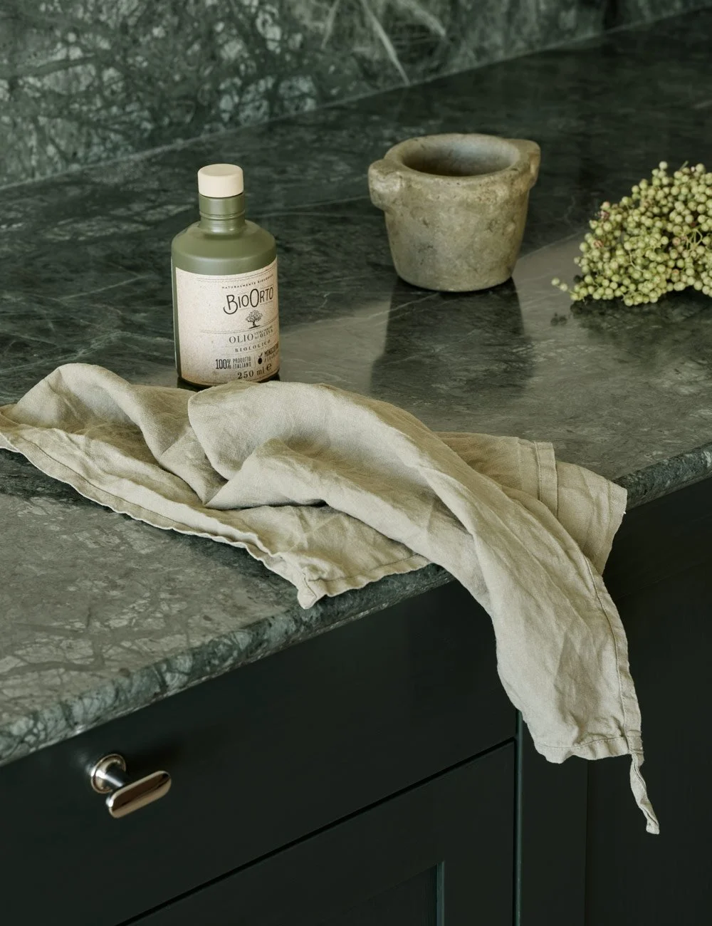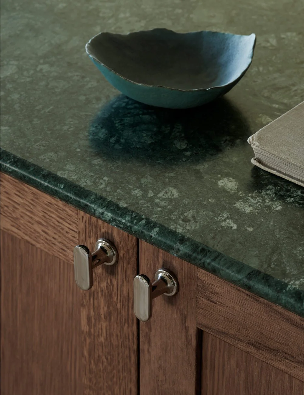 Bänkskivan i Verde Guatemala är en grön marmor som har en rik, djupgrön ton.