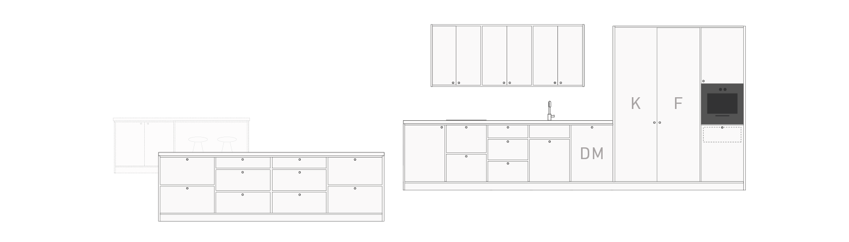 Prisexemplen nedan är baserade på skisserna för litet, mellan och stort kök och är beräknade på våra kök i grundutförande.