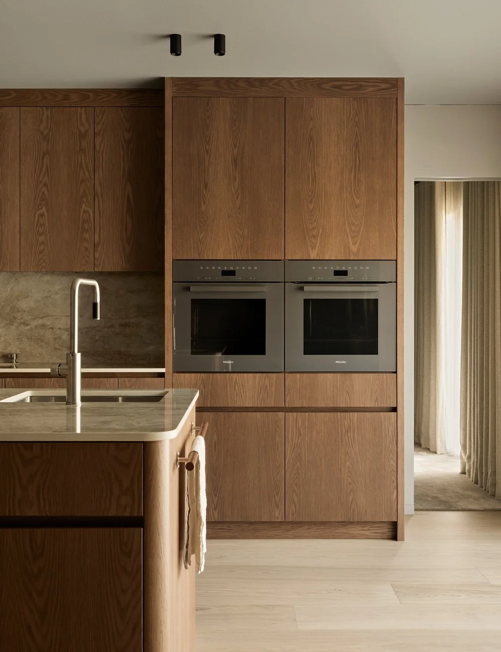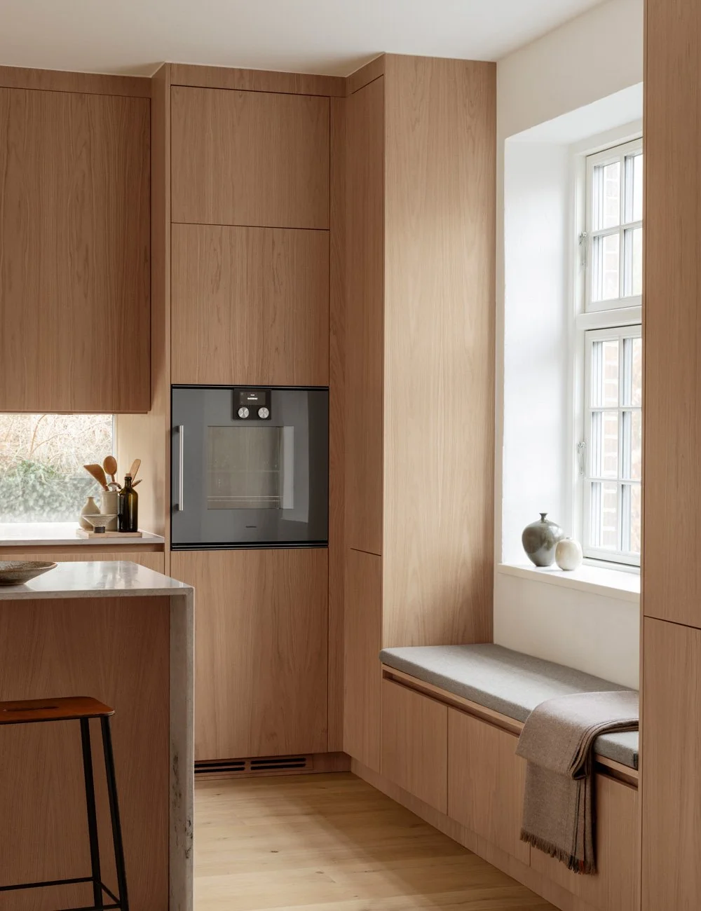 Elegant träkök i varm ek, format av tidlös design, taktila material och omsorgsfullt hantverk.